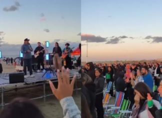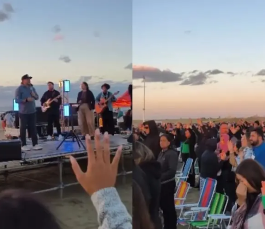 Uma multidão louvou a Deus na Praia do Cassino, em Rio Grande. (Foto: Reprodução/Instagram/Sara Gomes Ribeiro).